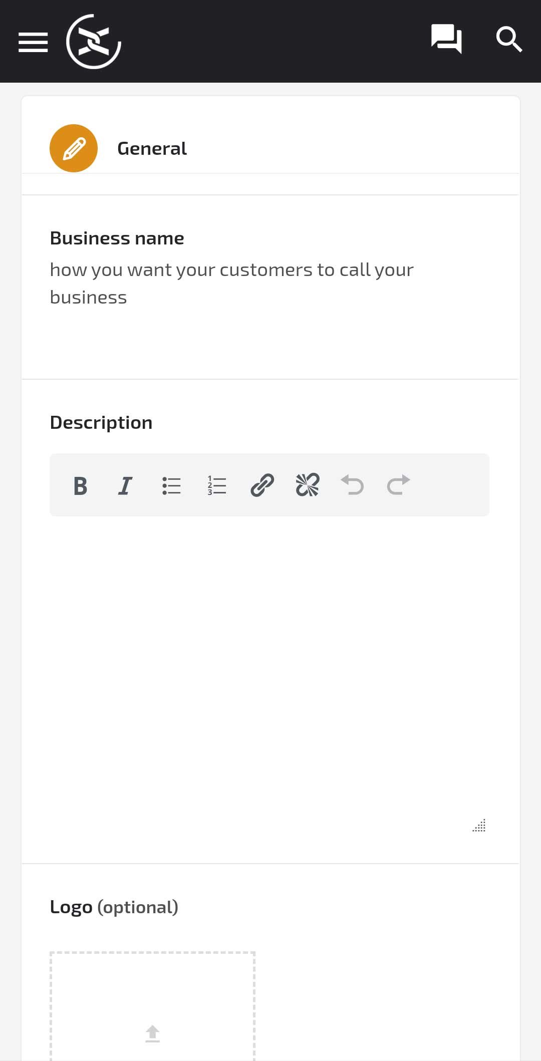 If you have a logo for your business, this is a great place to add it. Your logo is always proudly displayed on your business previews in search results or on the dedicated page itself. This field is optional, so you can choose not to upload a logo. This will display the default Lystingz logo instead.